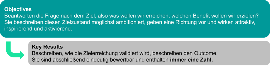 Objectives und Key Results sind eng miteinander verknüpft und bilden das Herzstück der OKR-Methode.
